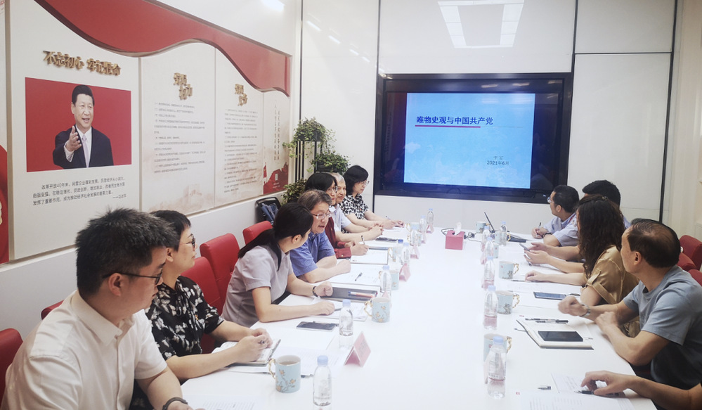 我校党委副书记李军表示双方要凝聚合力、创新共建形式和内容,充分发挥产教融合,将党建与业务工作有机融合,打造党建共建合作的典范。随后,李书记为大家讲授题为“唯物史观与中国共产党”专题党课。李书记从李大钊的《我的马克思主义观》、陈望道翻译《共产党宣言》、马克思主义史学“五大家”郭沫若、范文澜等党史故事,详细讲述了唯物史观在中国的发展和中国唯物史学的发展历程。李书记强调,我们要以唯物史观理解党的百年光辉历程,在学好党史中坚定理想信念。