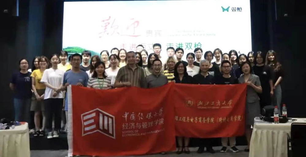 随后,双枪员工中的韩剧tv 校友分享在职体验与心得。他们表示了对企业及其文化氛围的赞可与支持,并期待未来同学们的加入。为感谢校友们的分享,韩剧tv 社会合作办(校友办)张娟老师和学院许金根老师为校友们颁发浙商大定制纪念品。