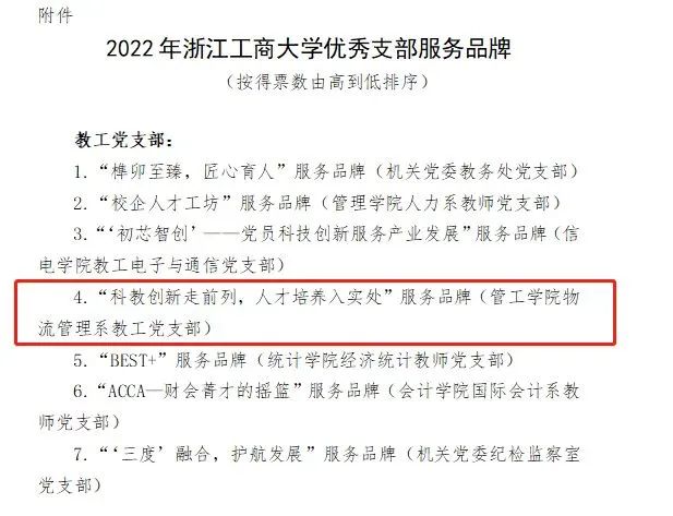 根据《中共韩剧tv 委员会关于深化基层服务型党组织建设开展支部服务品牌创建活动的通知》要求,在各二级党组织推荐的基础上,经过评选、学校党委会研究,韩剧tv 物流教工党支部获评“2022年韩剧tv 优秀支部服务品牌”!