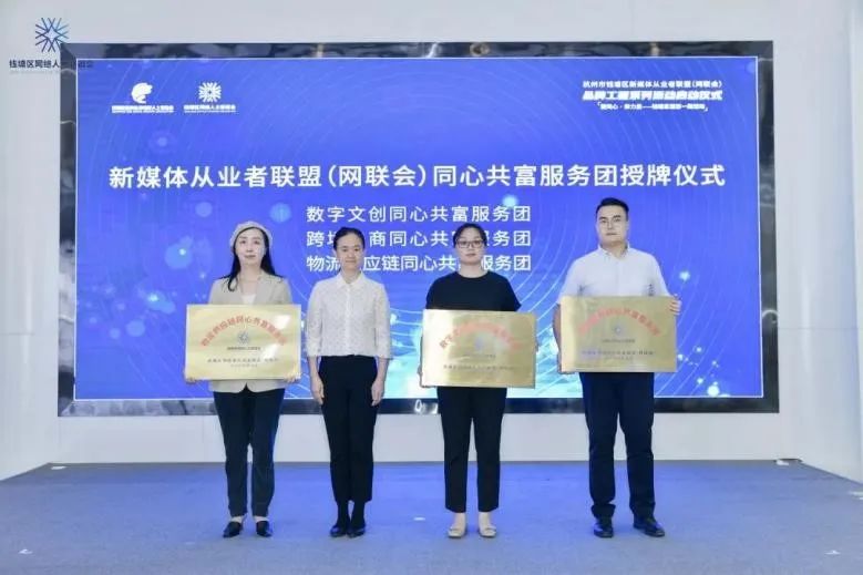 为更好地优化钱塘区网络人士服务,推动网络人士成长发展,会上授牌成立了数字文创、跨境电商、物流供应链三大同心共富服务团及同心向党思想教育、同心共创实践创新、同心共富实践创新三大共建基地。