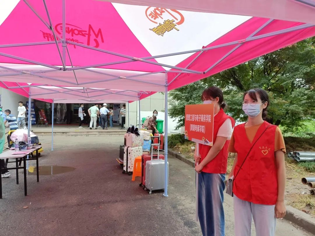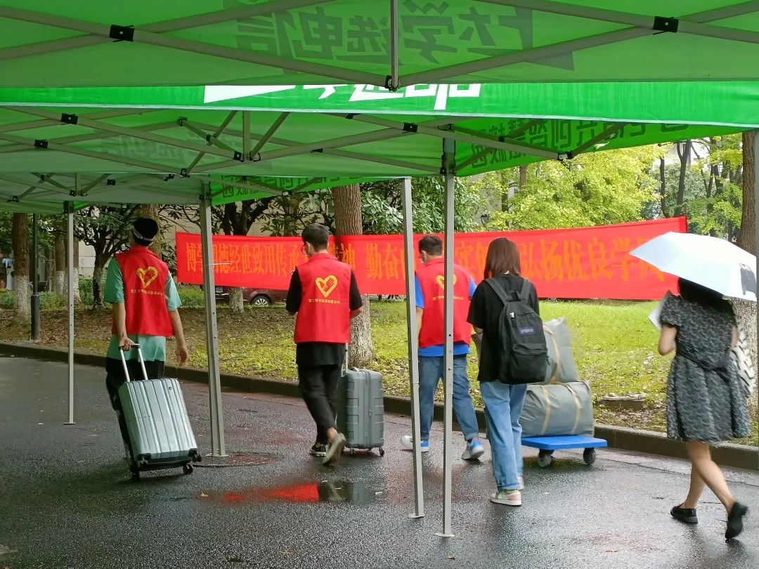志愿者们的身影分布在校门、报到点等区域,第一时间为新生们答疑解惑,提供服务。