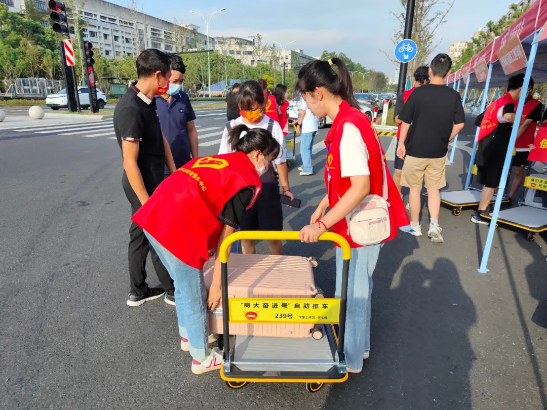 9月2日上午,期待已久的22级管工浙小商们陆续走进校园,我们的志愿者团队以饱满的姿态分布在校门、宿舍等区域,提供新生咨询、引导新生报到、引领新生入住寝室和帮忙搬行李等服务,志愿者们忙碌的身影,成为了校园里的一道靓丽风景线。