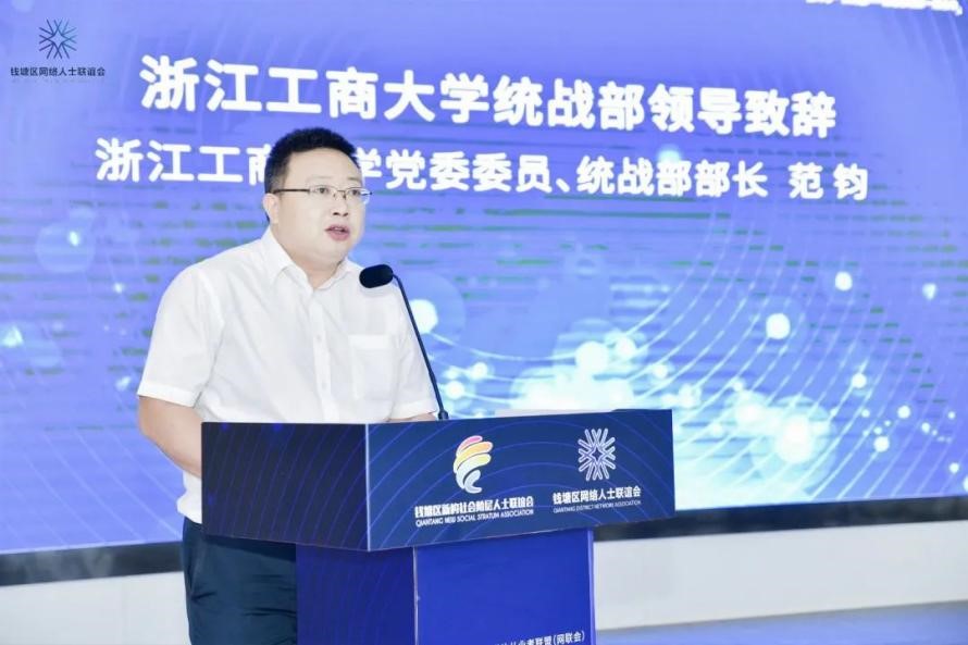 9月1日,学院参加钱塘区新媒体从业者联盟(网联会)品牌工程系列活动启动仪式暨同心·新力量——钱塘思潮第一期活动。区委常委、统战部部长周伟东,韩剧tv 党委委员、统战部部长范钧出席活动并致辞。区有关部门、各街道及村社等相关负责人,韩剧tv 韩剧tv (跨境电商学院)党委书记伍蓓、党委副书记、纪委书记许金根,马克思主义学院和艺术设计学院相关负责人,区新的社会阶层人士代表参加。