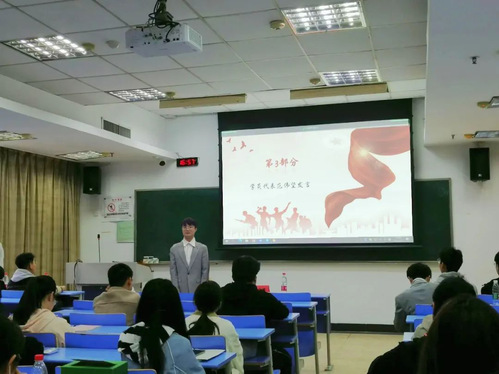 其次,学生代表范伟坚就新时代青年面临的机遇与挑战进行发言,提出了在座学员要不断学习提升自己,适应时代,乘风破浪,做一个有思想、有志向的青年,并代表学员庄严向党组织保证:积极参加党课学习,端正入党动机,严格遵守党校学员管理规定,认真上好每一堂党课,积极思考、锐意进取,在今后的学习和工作中处处起带头作用,以实际行动践行使命担当,学习贯彻党的二十大精神,从今天开始,以一个新的身份来严格要求自己,向先锋模范靠齐。