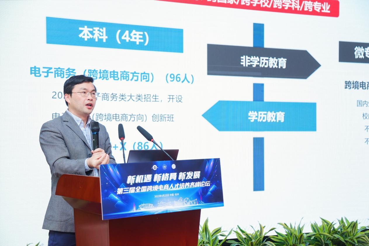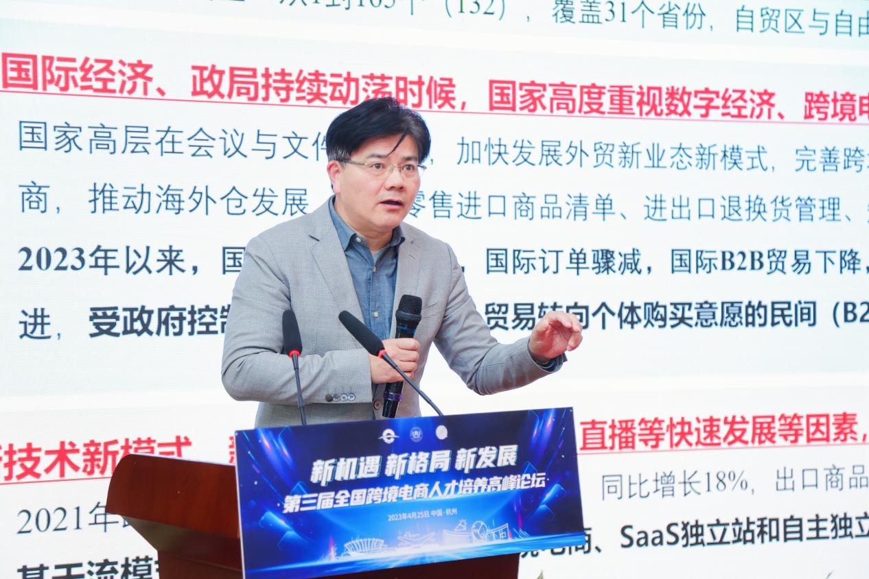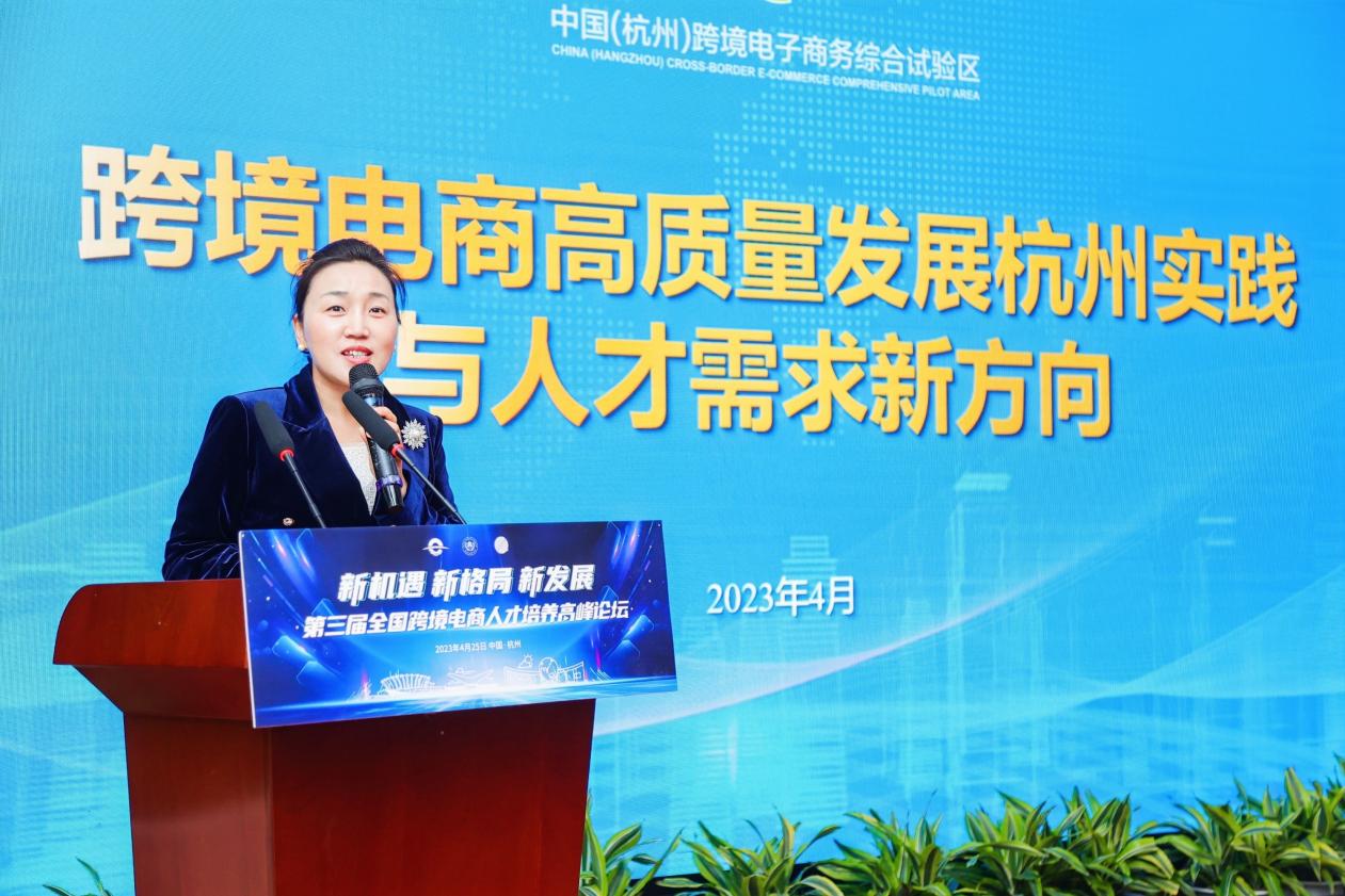 杭州市自贸委跨境电商综试处副处长陈健介绍杭州跨境人才建设工作情况。杭州跨境电商生态离不开人才的支撑,在杭州市近日出台的《杭州市人民政府关于加快推进跨境电子商务高质量发展的实施意见》中,鼓励在杭高校开展“政产学研”合作,鼓励举办国际化、专业化的跨境电商人才活动,并给予资金扶持。