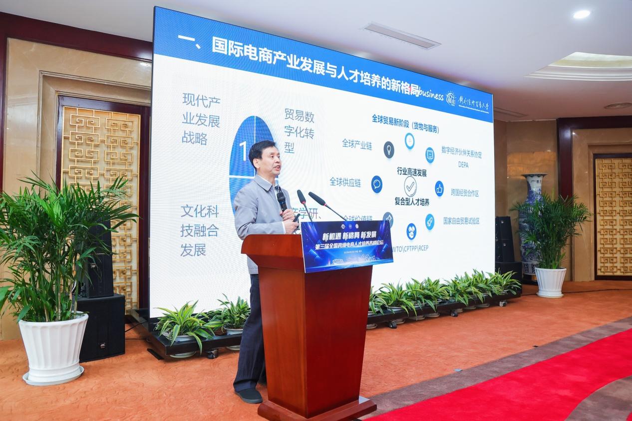 浙江省教育厅高等教育处二级调研员王国银指出,跨境电子商务是外贸经济发展新引擎,浙江省非常重视跨境电子商务的高质量发展,也积极引导高校培养跨境电子商务人才,促进人才培养和产业的对接匹配。一是优化学科专业结构,积极引导高校适应全区域跨境电商综试区建设,设置相关的专业。二是协同育人,引导高校深化产教融合。三是强化提升学生的创新创业能力,通过设立浙江省大学生电子商务竞赛等大赛,以赛促教。四是推动教育科技人才的一体化发展,鼓励老师加强相关研究,更好地提高人才培养针对性和政府的适应性。最后,他希望全国专家能够在今后的工作中给予更多的指导、关心和支持,以更好地支撑和服务全省乃至全国的跨境电子商务产业的高质量发展,为浙江省两个先行作出更大的贡献。