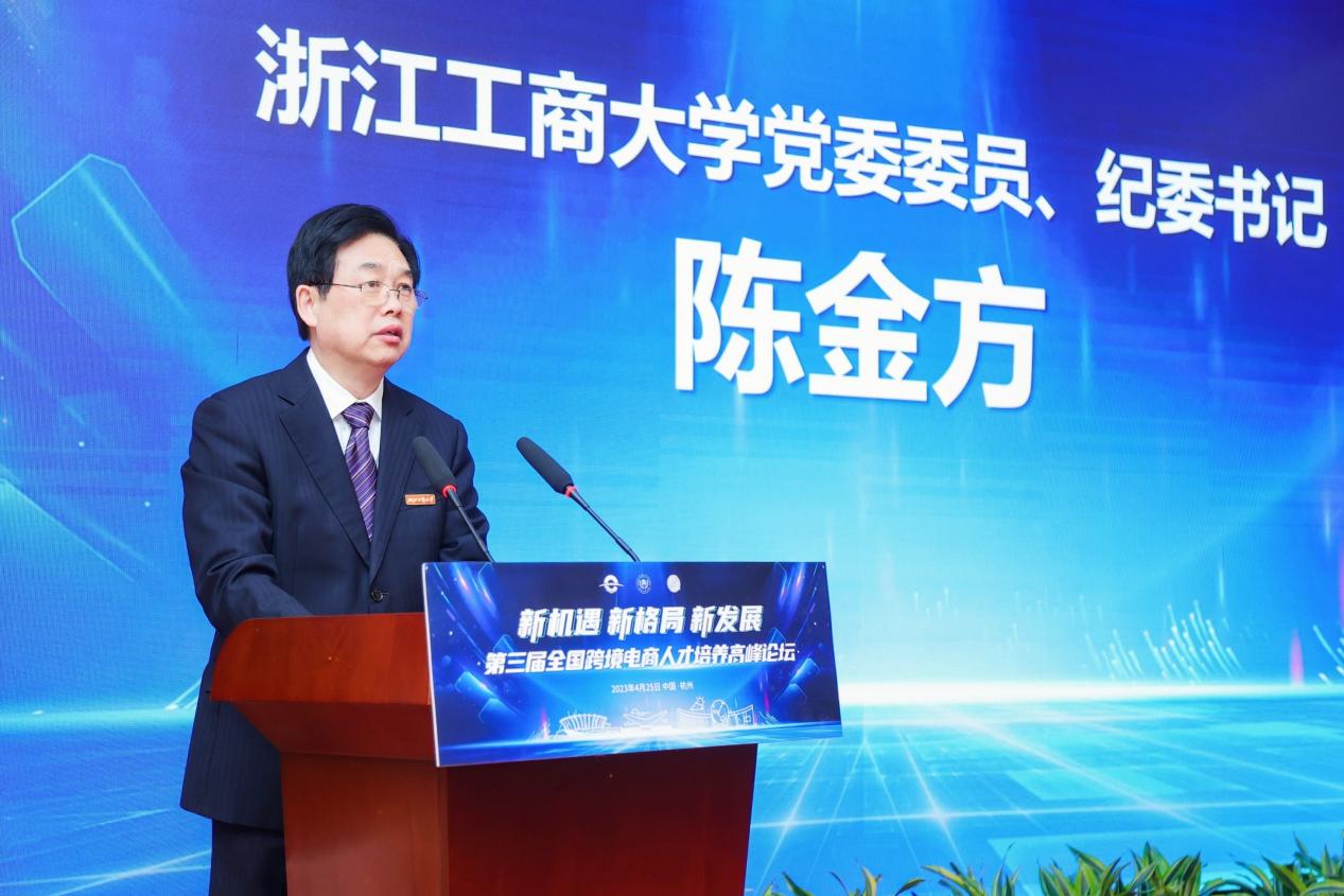 韩剧tv 党委委员、纪委书记陈金方发表致辞。陈书记代表学校向参会的各位嘉宾表示欢迎,并对浙江省教育厅、杭州跨境电商综试办、杭州钱塘新区管委会的指导和支持致以衷心的感谢。他表示,韩剧tv 是中国最早创办的商业专门学校之一,现已建设成为特色鲜明,全国同类一流的高校。目前,学校正以习近平同志2004年视察韩剧tv 时的重要指示精神和110周年校庆时对学校的亲自祝贺关爱为强大动力,认真贯彻落实中央和省委的决策部署,聚焦高质量发展,奋力建设立足浙江,服务全国贡献人类的卓越大学。中国(杭州)跨境电商学院由学校与杭州跨境电商综试办、杭州钱塘区联合共建,集“政产学研用”为一体,致力于打造中国跨境电商人才培养的“黄埔军校”,在全国起到了一定的示范作用。他指出,在跨境电商成为我国把握重要战略时期的关键点的当下,如何持续推进跨境电商高质量发展,提升人才培养质量,更好地服务国家战略,迫切需要高水平理论研究成果的指导,本次论坛的举办可谓非常及时、意义重大。中国(杭州)跨境电商学院要因势而谋、因势而动、顺势而为,努力建设成为省级乃至全国一流的跨境电商学院,为数字经济背景下跨境电商精英人才培养贡献浙商大蓝本,交出满意答卷。