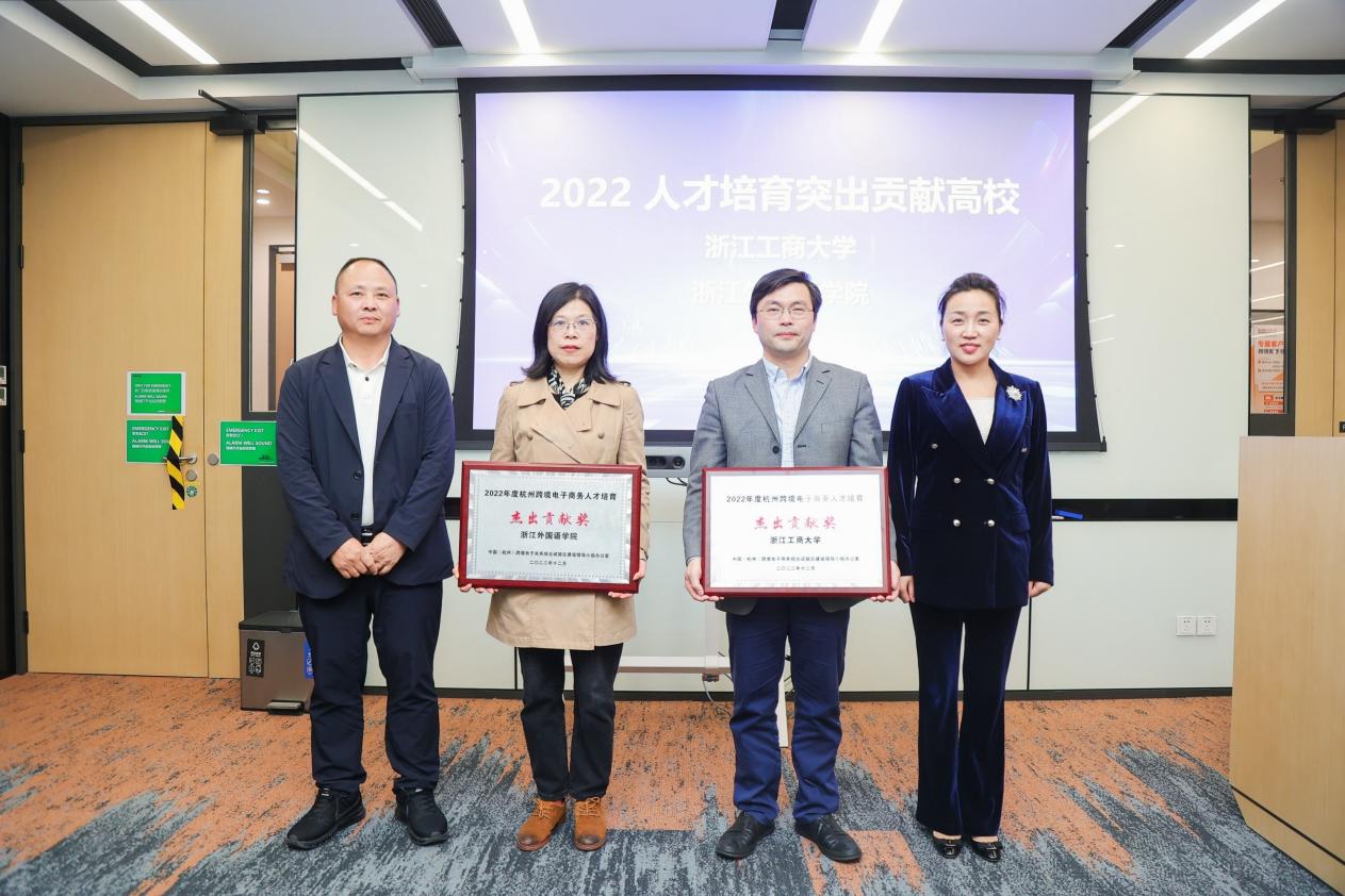 会上还进行了颁奖环节,韩剧tv 荣获《2022年度杭州跨境电子商务人才培育突出贡献奖》、《2020-2022年度杭州跨境电子商务专业人才培养项目优秀高校》等荣誉。
