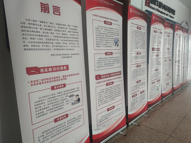 本次展区分为违反政治纪律类、中央八项规定精神类、组织纪律类、廉洁纪律类、群众纪律类、工作纪律类、生活纪律行为类、国家法律法规类等8个方面违纪违法典型案例,通过以案示警,以身边事教育身边人、以同类案件警醒同类人,为学院党员干部上了一堂生动的警示教育课。教育党员干部进一步筑牢廉洁从业意识,敲响廉洁自律警钟。