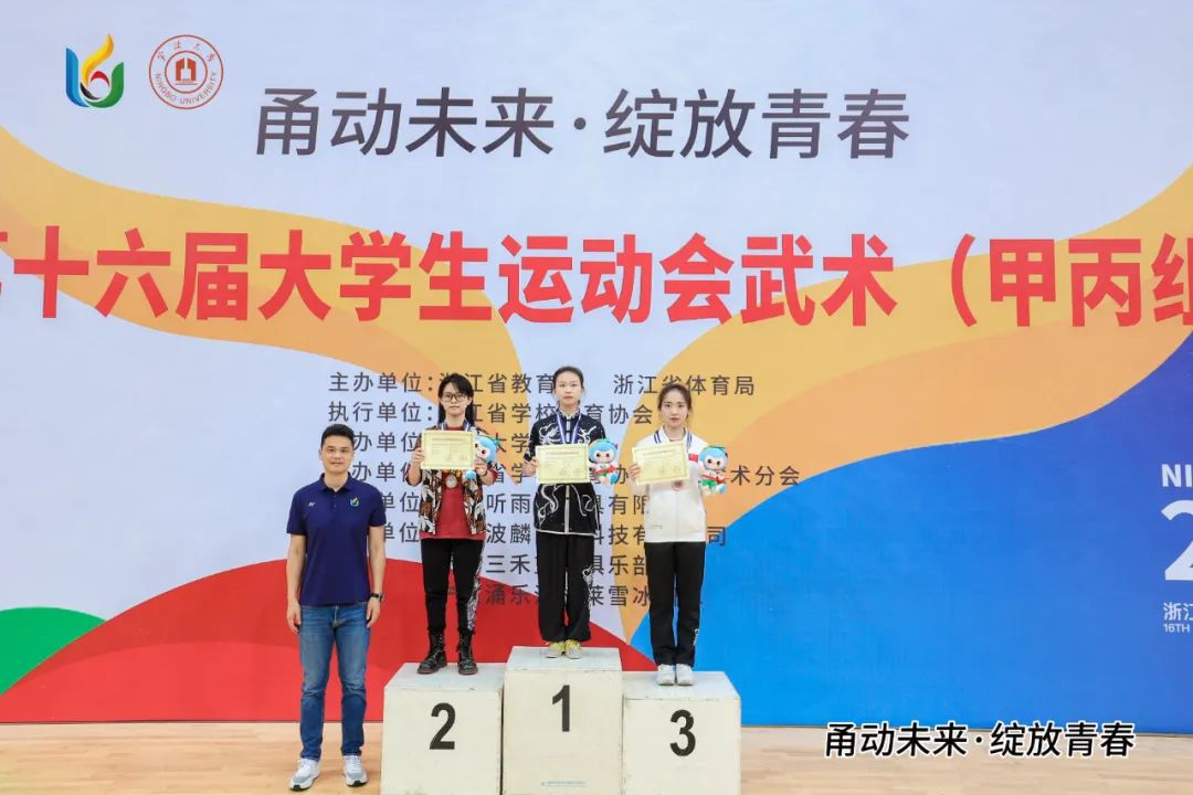 5月11至14日,我校武术代表队在吴雪霜老师的带领下,参加了由浙江省教育厅、浙江省体育局主办,宁波大学承办,浙江省学校体育协会大学武术分会协办的浙江省十六届大学生运动会武术比赛。