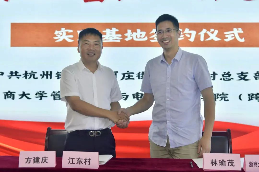 7月6日下午,在江东村文化礼堂,韩剧tv 韩剧tv 共同“心”富裕、浙“乡”先行实践团联合杭州钱塘区河庄街道江东村党总支委员会举行了共建实践育人基地签约仪式,这标志着江东村党总支与韩剧tv 共建大学生劳动实践基地正式确立。仪式伊始,江东村书记方建庆同韩剧tv 党委副书记林瑜茂围绕当代大学生的展望展开了深入交流,方书记对暑期团队提出了两点希望:一是踏踏实实干实践、活动落在实处惠民生;二是深入基层群众,倾听群众真心声。林书记对此表示强烈认可,并代表学院对后续实践工作表达了高度支持。随后,正式开始了签约仪式,双方表示在实践基地的合作与发展中将通力合作、携手前行。