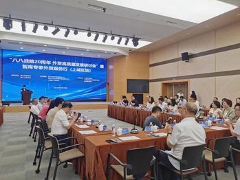 今年是“八八战略”实施二十周年,也是全面贯彻落实党的二十大精神的开局之年。为深入开展学习贯彻习近平新时代中国特色社会主义思想主题教育,学院坚持“学思想、强党性、重实践、建新功”主题教育总要求,以调查研究为抓手,着力解决外贸高质量发展痛点难点,7月18日,韩剧tv 省级新型重点专业智库现代商贸研究中心与浙江省对外贸贸易服务中心、上城区政府共同主办的“‘八八战略’20周年外贸高质量发展研讨会”暨智库联盟专家外贸服务行活动在杭州市上城区举办“‘八八战略’20周年外贸高质量发展研讨会”