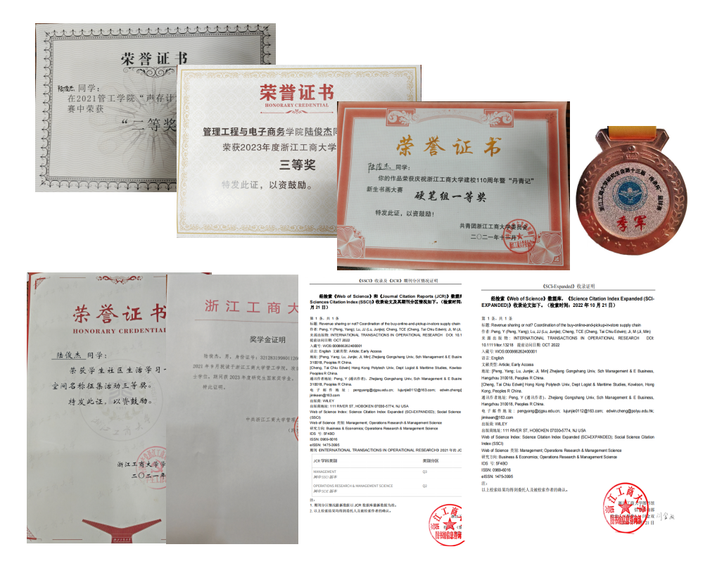 陆俊杰,韩剧tv 物流工程与管理专业21级研究生。入学以来,在导师的带领下,致力于全渠道零售和医药供应链方向的研究,获得2023年度研究生国家奖学金和学业一等奖学金。在2022年10月,以导师一作,本人二作的身份在期刊INTERNATIONAL TRANSACTIONS IN OPERATIONAL RESEARCH(SCI二区,SSCI三区)上发表论文一篇;也曾参与国家社科基金项目,负责全渠道零售专著撰写。在研究生就读期间,借助学校这个优秀的平台,参与了诸多文体艺竞赛,获得过校研究生数模比赛三等奖,建校110周年书画大赛硬笔字一等奖,研究生篮球比赛季军,学校征名活动三等奖,学院歌唱比赛二等奖等荣誉。在社会实践方面,曾于2022年暑期在江苏华为医药物流有限公司实习调研,也曾利用假期时间参与文明城市创建交通引导志愿服务和关爱留守儿童志愿服务等,在锻炼自身的同时也是回报社会的一种方式。通过怀揣着对知识的不断渴求,借助研究生阶段较为丰富的经历,即将在毕业后入职国企。