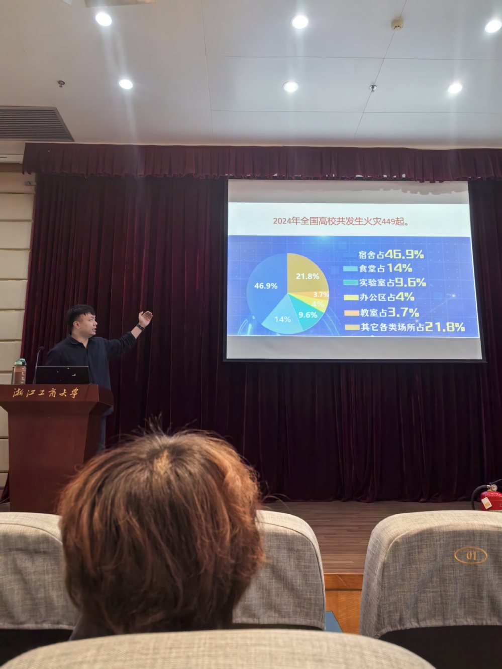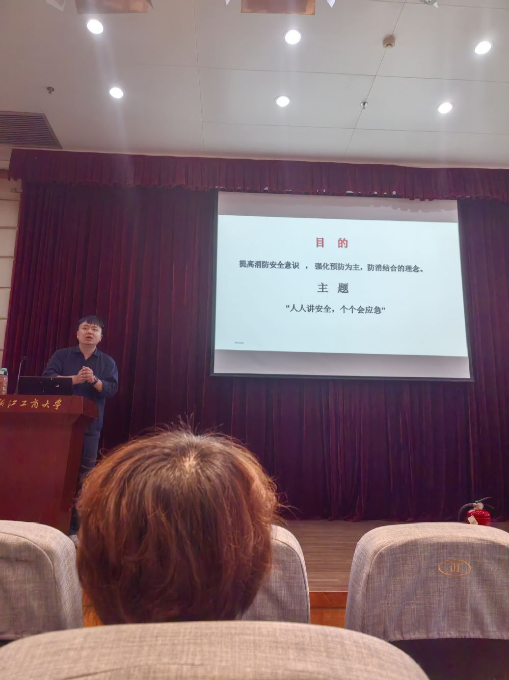 培训会上,保卫处消防教官结合近年来典型火灾案例,通过视频、图片等形式生动剖析了火灾隐患的成因及后果,重点讲解了校园、办公场所、家庭环境中的防火要点,包括电器线路检查、燃气安全使用、消防通道维护等知识。同时,针对不同场景下的火灾应对策略,教官详细介绍了灭火器、防烟面罩、消防栓等器材的正确使用方法,并强调“预防为主,防消结合”的消防安全理念。