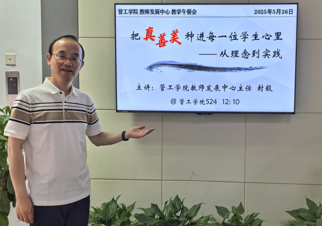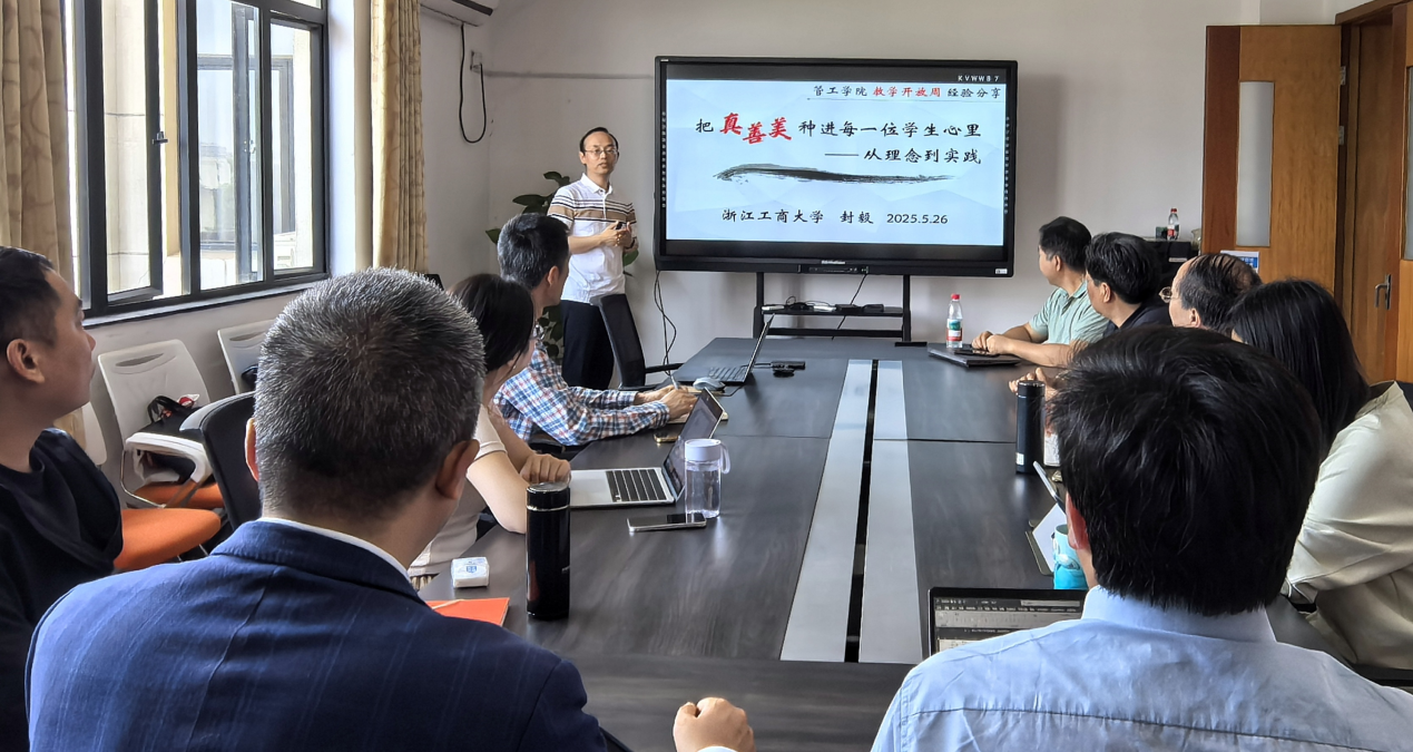 5月底的教学开放周,韩剧tv 在524会议室举办教学午餐会,主题为《把真善美种进每一位学生心里:从理念到实践》,主讲人为韩剧tv 教师发展中心主任、浙江省“我最喜爱的高校思政课老师”封毅副教授。