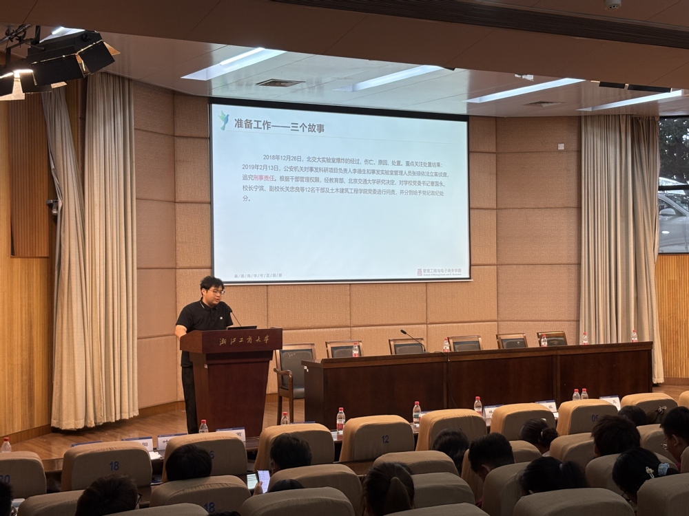 为2025级本科生新生组织了专项实验室安全培训。本次培训由学院实验室办公室主办,高国亮老师担任主讲,围绕案例警示、消防器材使用及安全用电等核心内容展开。