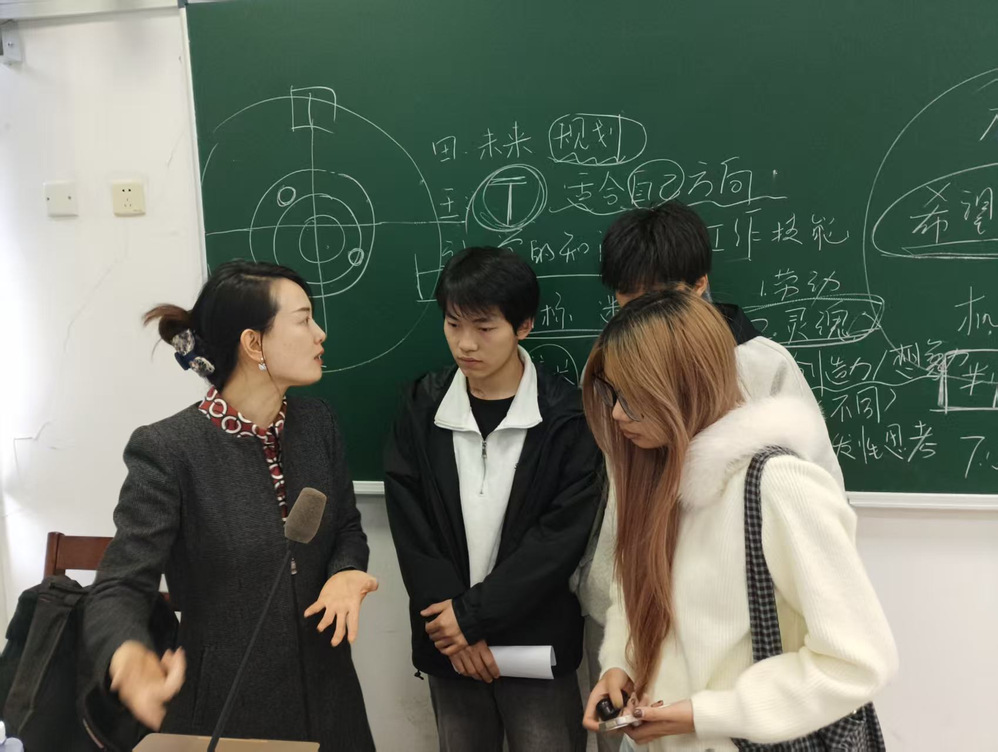 分享会上,深耕互联网行的张敏结合自身职业经历,拆解“互联网时代、品牌时代、AI时代”成长三部曲,提炼可复用的人生选择底层逻辑。她坦言,个人成长需紧扣时代脉搏,互联网时代要精准洞察需求、抢占赛道先机,品牌时代需从流量逻辑转向价值逻辑、解决真实需求;针对AI革命,她提出“AI是打造金饭碗的工具”的观点,鼓励学子培养人机协同能力,深耕高情感体验与深度垂直领域。同时,她分享三大务实成长心法:以终局思维倒推学习重点,构建“T型人才”无限游戏,在小步快跑的实践闭环中提升认知。互动环节,学子围绕需求发现、首份工作选择、创业恐惧克服等问题提问,张敏校友结合自身成败案例耐心答疑,分享结束后仍留场与学子深入交流。活动尾声,现场氛围热烈,充分彰显优秀校友对后辈的关怀与担当。